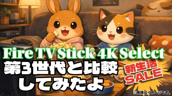 うさねこの暮らし手帳・おトク散歩 Fire TV Stick 4K Selectの違いと買い替えの目安|第3世代との比較あり【新生活セール2026】 Fire TV Stick 第3世代ユーザー必見。4K Select買い替えるべき?4Kテレビに変えた人向けに、実際の違いと後悔しない判断基準をまとめました。 うさねこの暮らし手帳・おトク散歩