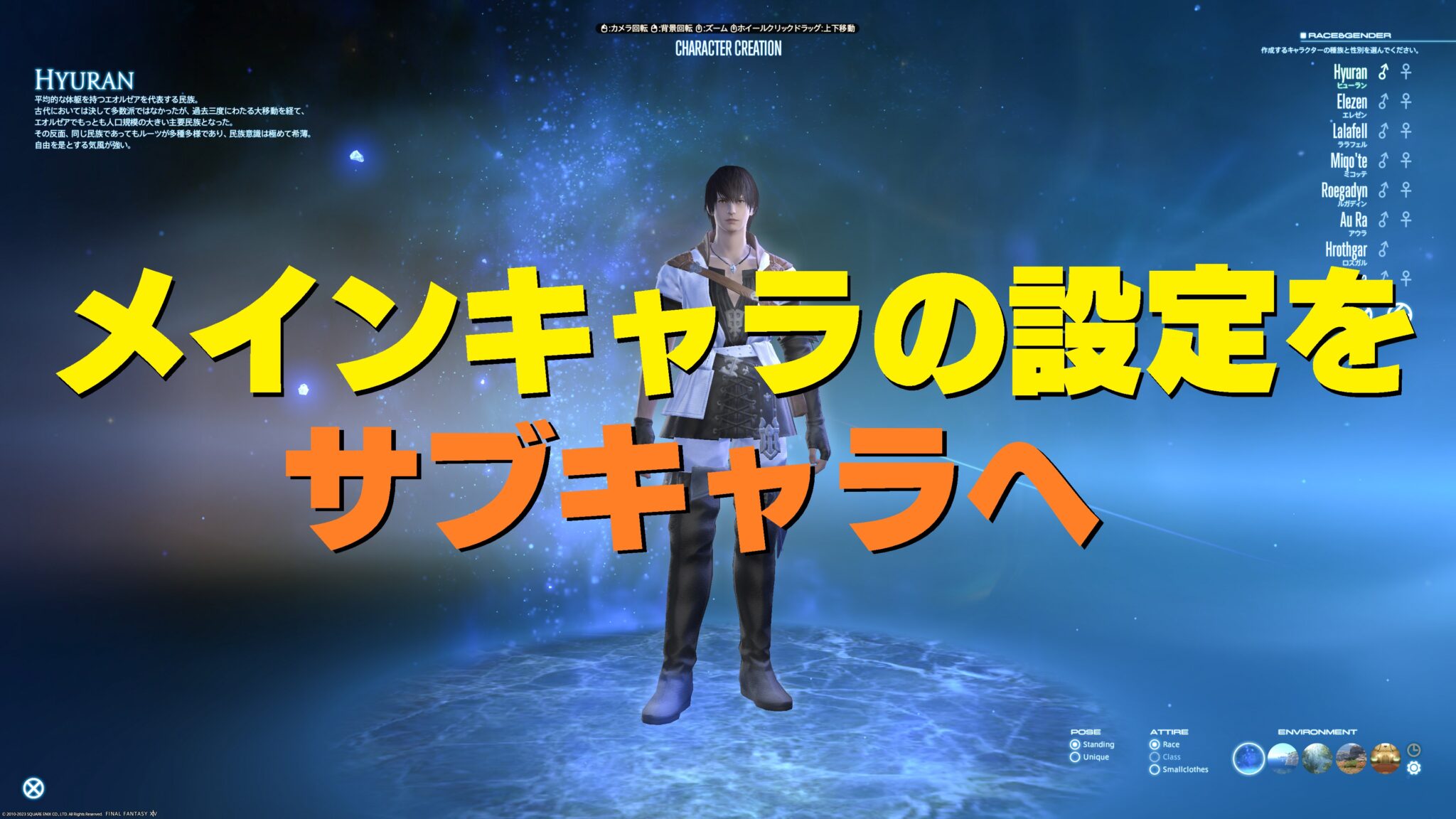 同一のプラットフォームかつ同一のスクウェア・エニックス アカウントでプレイしているキャラクターの各種設定を、他キャラクターにコピーする機能が追加されます。
