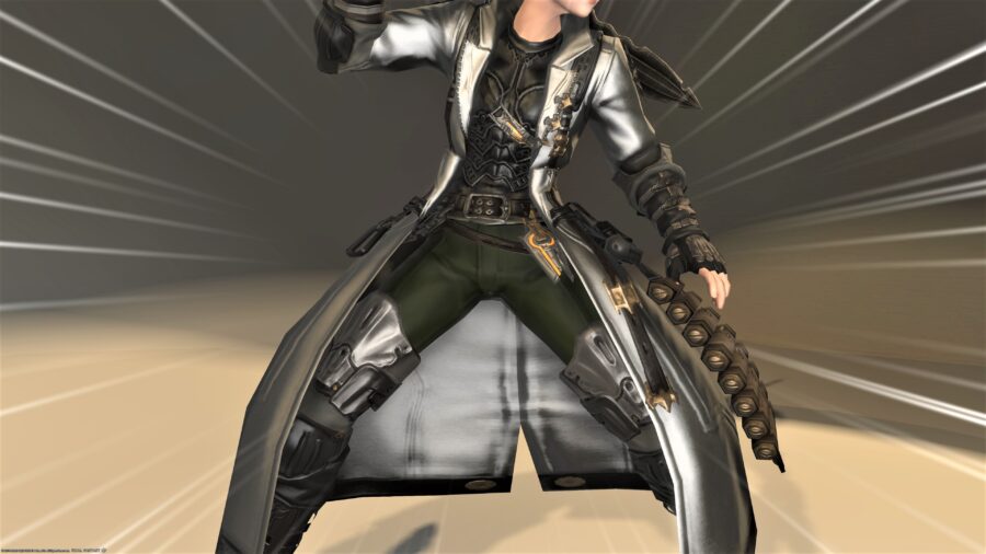 コートやグローブ、トラウザーなどで構成され、弾薬ポーチのような装飾がある一方で普段着にも合わせやすいデザインが特徴です。各部位の見た目や染色後の雰囲気、入手方法をまとめています。