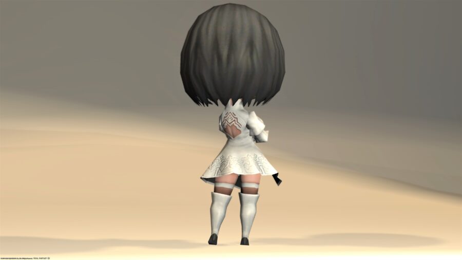 軍事基地深部で発見された白い小型オートマトン。「2P」を模したかのような姿をしているが、特に敵対してくる様子はないため、ひとまずは安全だろう。なお、未知の技術で作られているらしく、動力源なども一切不明である
