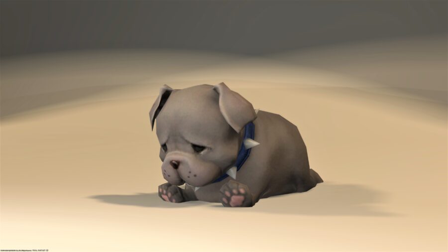 FF14のミニオン「ブルパピー」は、クポフォーチュン1等や、Lv60ダンジョン「巨大防壁 バエサルの長城」の最後のBOSS討伐後の宝箱から入手できるミニオンです。マーケットボードでも取引可能で、温厚すぎて落ちこぼれた軍用犬の幼獣という設定も印象に残ります。ぺたんとしたお尻や短いしっぽ、困ったような顔つきがかわいくて、見ているだけでも楽しいミニオンです。