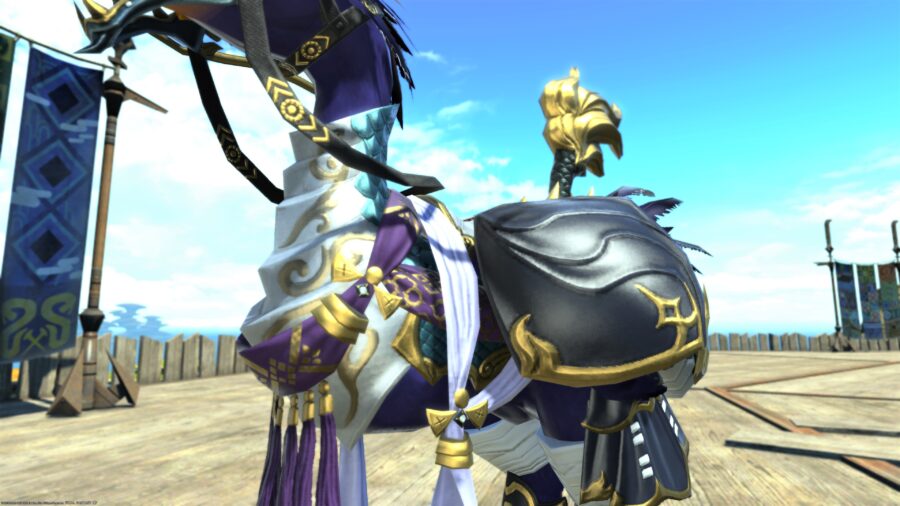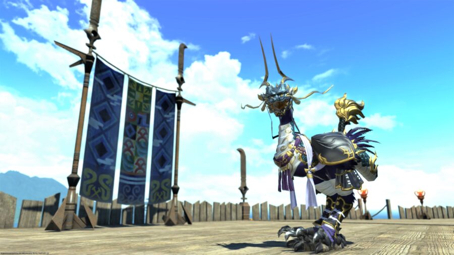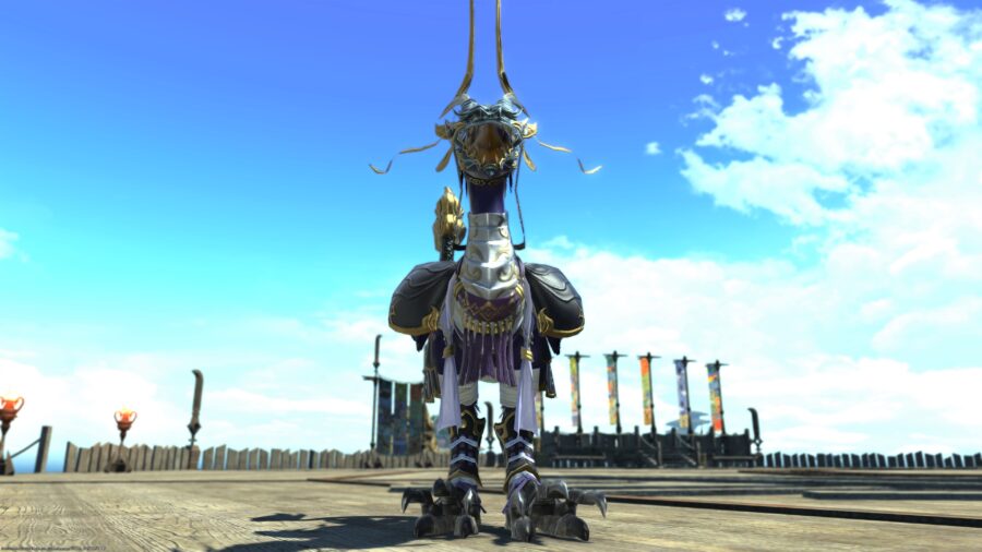 FF14のチョコボ装甲「セイリュウ・バード」は、ロックボックス鑑定やクラフター製作で入手できる装甲です。「青龍の鱗」を使った製作が可能で、マーケットボードでも購入することもできます。青を基調にした見た目で、東方風の装飾や力強いシルエットが印象的なチョコボ装甲です。