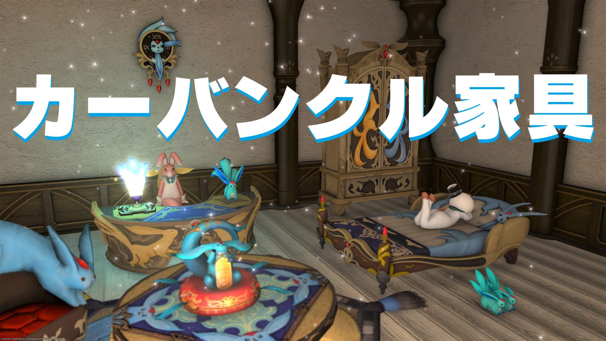 今回の「第四次復興事業計画 イシュガルド復興 クポフォーチュン」では、「カーバンクルシリーズ家具」が沢山当たったので、「ハウジング」に設置してみました。