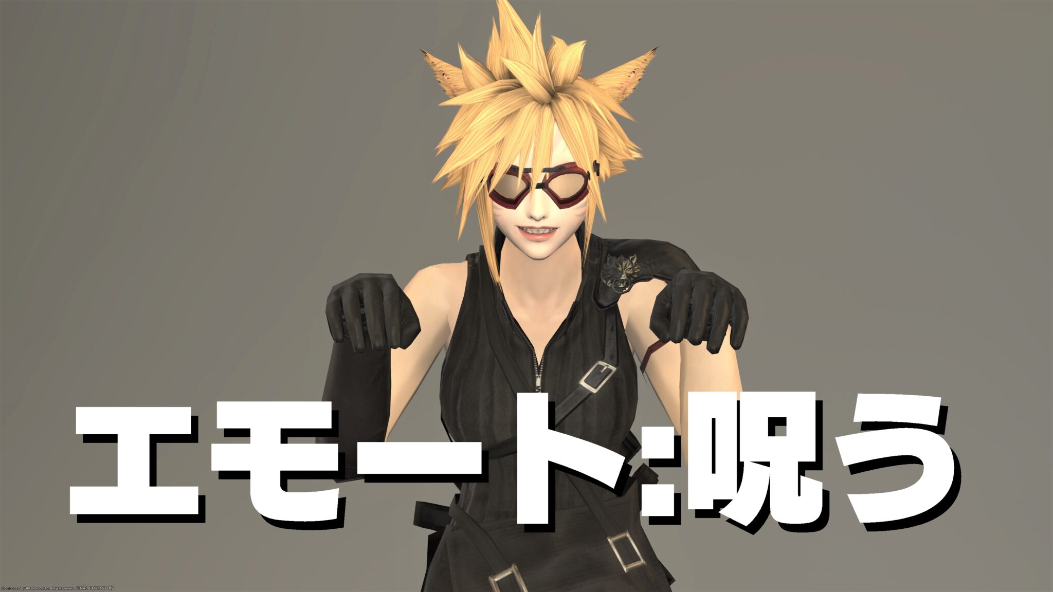 エオルゼアでは「不敵」な笑みを浮かべながらの呪いポーズ。