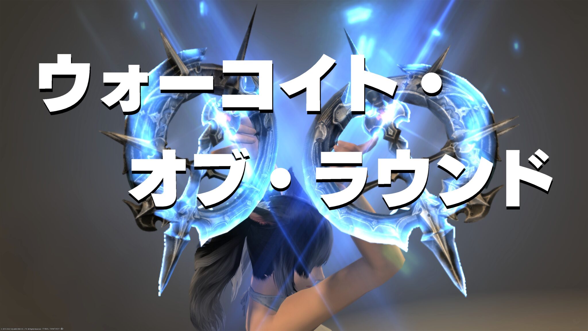 青白く光輝くチャクラムから、光の破片が上へと舞い上がっては消えていく様子が美しいです。