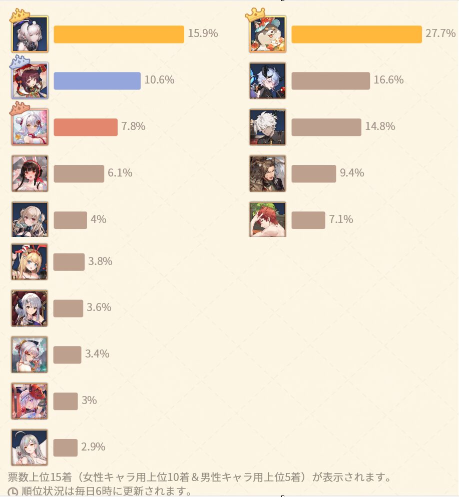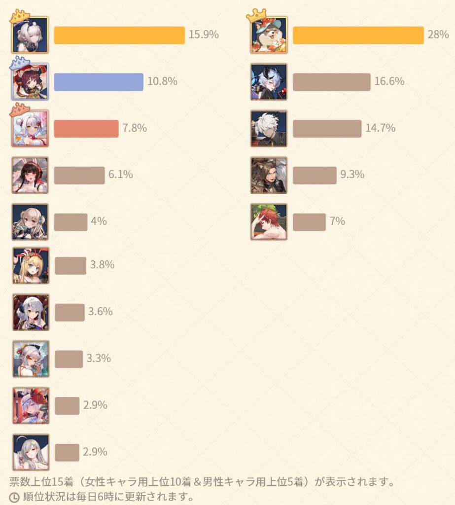 そうそう、クエストこなして投票券もらって、好きなキャラに投票するの!