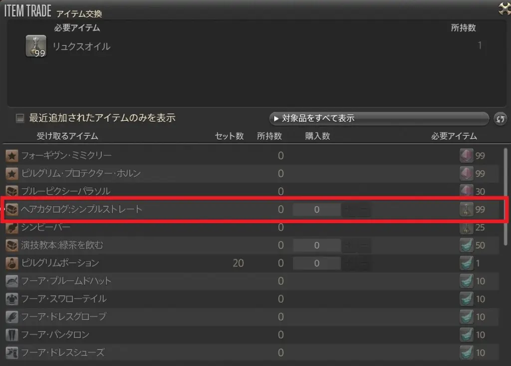 もう一つの入手ルートは「リュクスオイル」との交換。