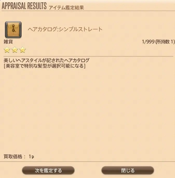 財宝の鑑定結果ラインナップに「ヘアカタログ:シンプルストレート