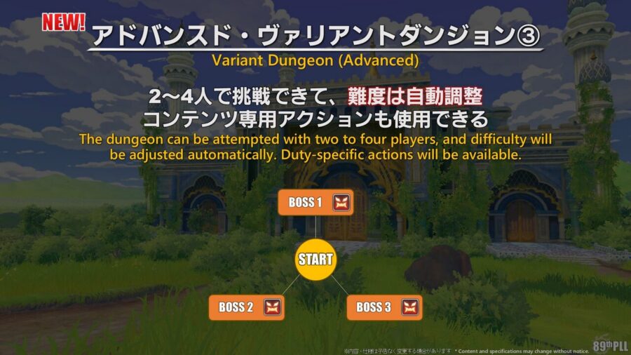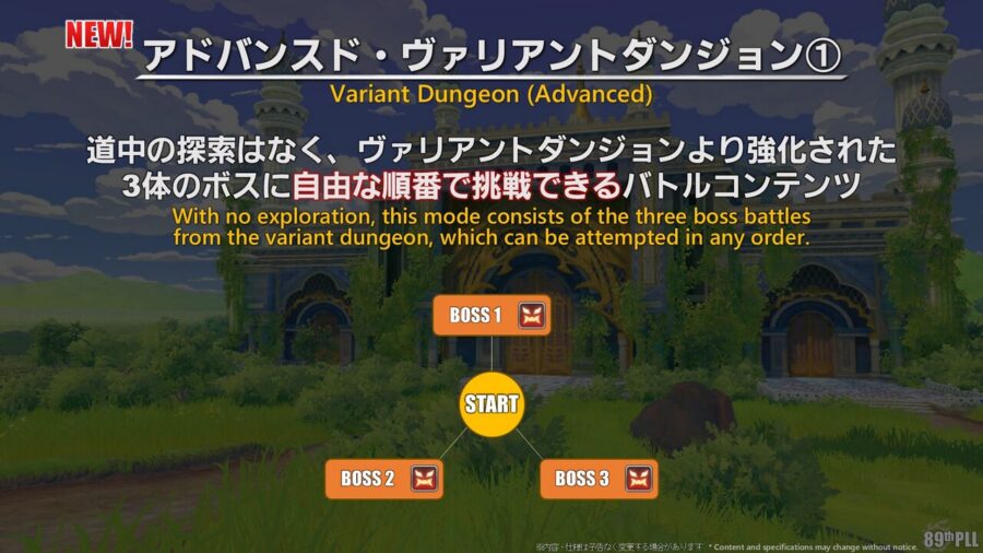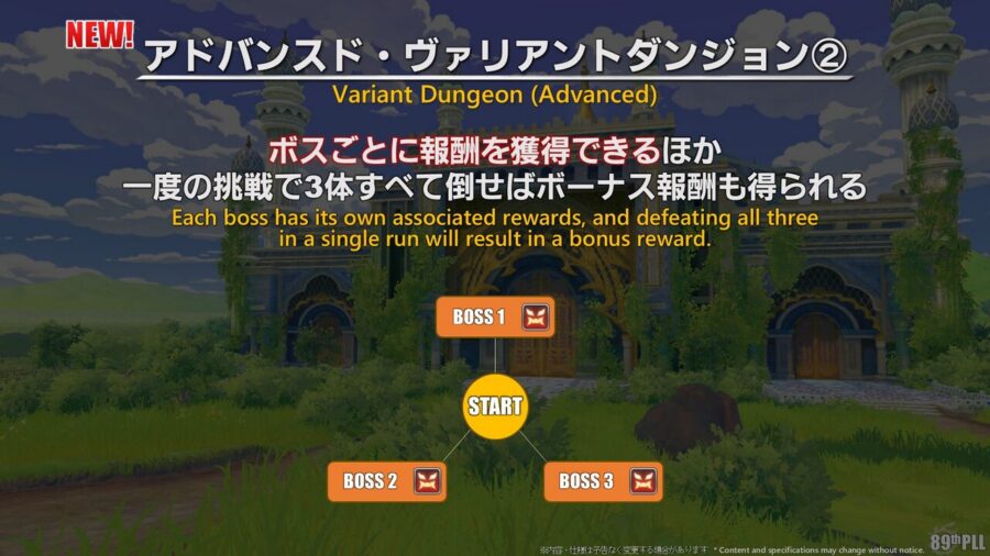 今回からはその先のアドバンスド・ヴァリアントダンジョンが『道中なし・ボス3体だけを好きな順番で挑戦できるモード』になってて、難易度は2〜4人専用コンテンツなんだって。