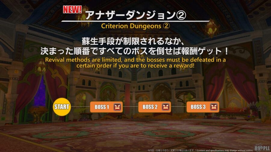 - チャレンジコンテンツになっているため蘇生手段を制限