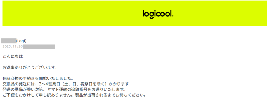 - ロジクール側で保証対象かどうかチェック