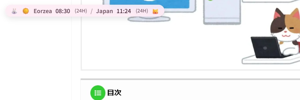 今回、うさねこ散歩ブログ内で、エオルゼア時間を表示できるようにしてみました🐰✨