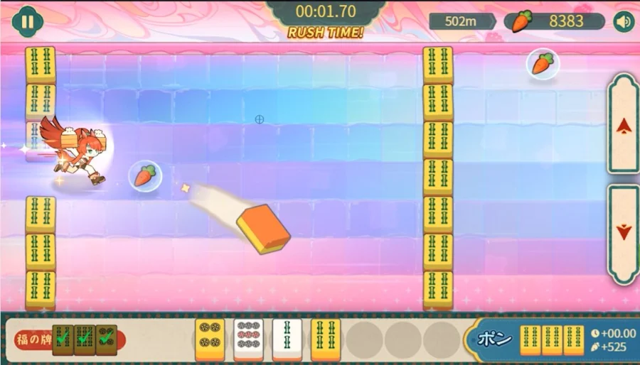 赤麟を操作して麻雀牌の障害物をどかしながら、ハイスコア&報酬集めに挑戦するタイプで、春節っぽくて楽しい~。
