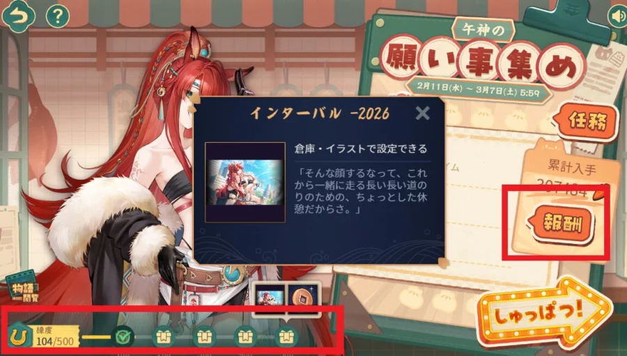 報酬は「任務」と「報酬」の2か所から受け取りできます。意外と取り忘れやすいので、遊んだあとにサッと確認するのがおすすめです🐎✨
