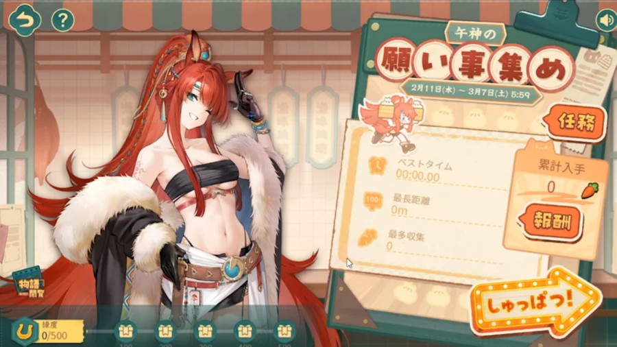 • 期間中、ミニゲームに挑戦し、任務を達成すると、ニンジンと練度(蹄鉄マーク)を入手