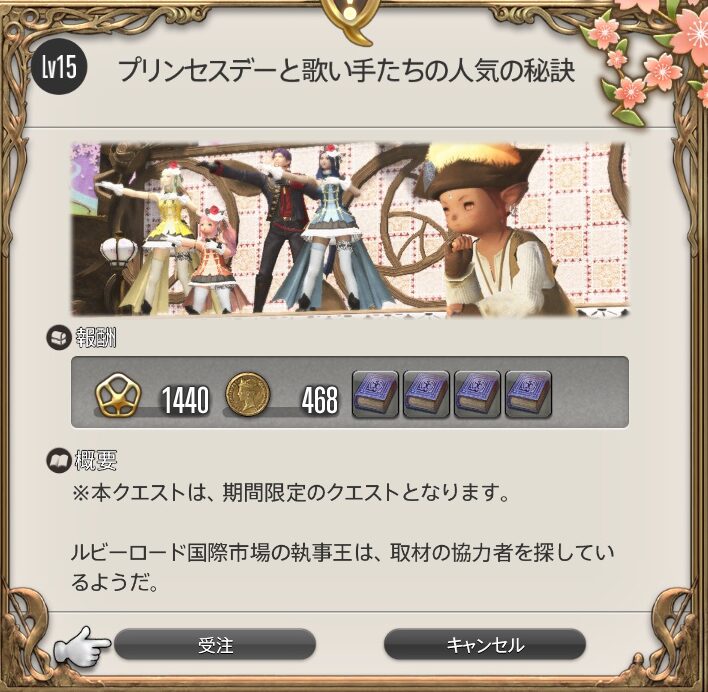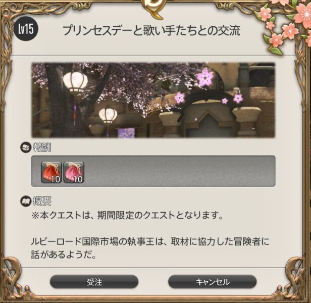 FF14 花咲く笑顔と歌声と |報酬「デイリーチュニック:オーバーサイズ」プリンセスデー2026
