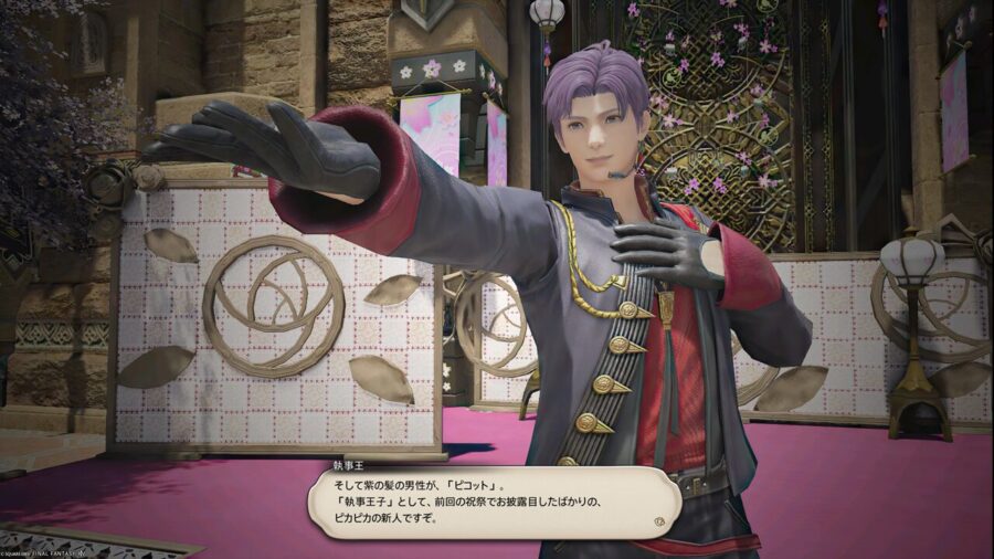 そして紫の髪の男性が、「ピコット」。「執事王子」として、前回の祝祭でお披露目したばかりの、ピカピカの新人ですぞ。