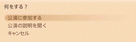 公演参加終了以外の4種類のアクションを、舞台の演者達をターゲットして実行していきましょう。