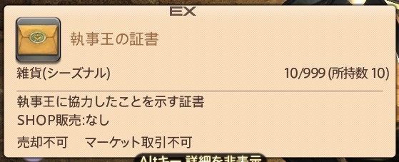一部アイテムは、NPC「執事王の使用人<SEASONAL>」から「執事王の証書」と交換することで入手可能です。