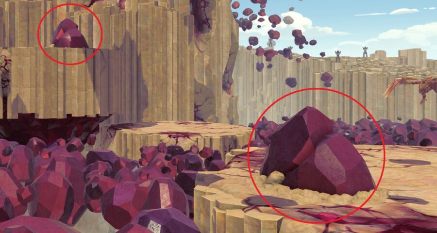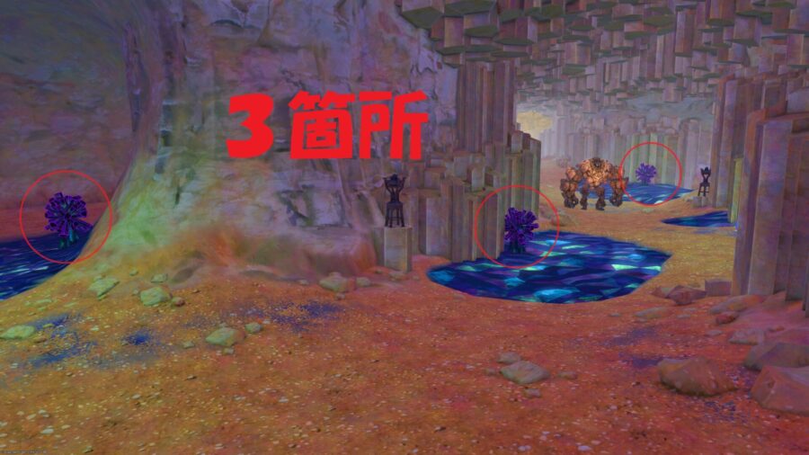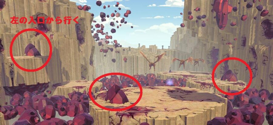 鉱石の塊に範囲攻撃は当てず、そのまま通過しましょう。