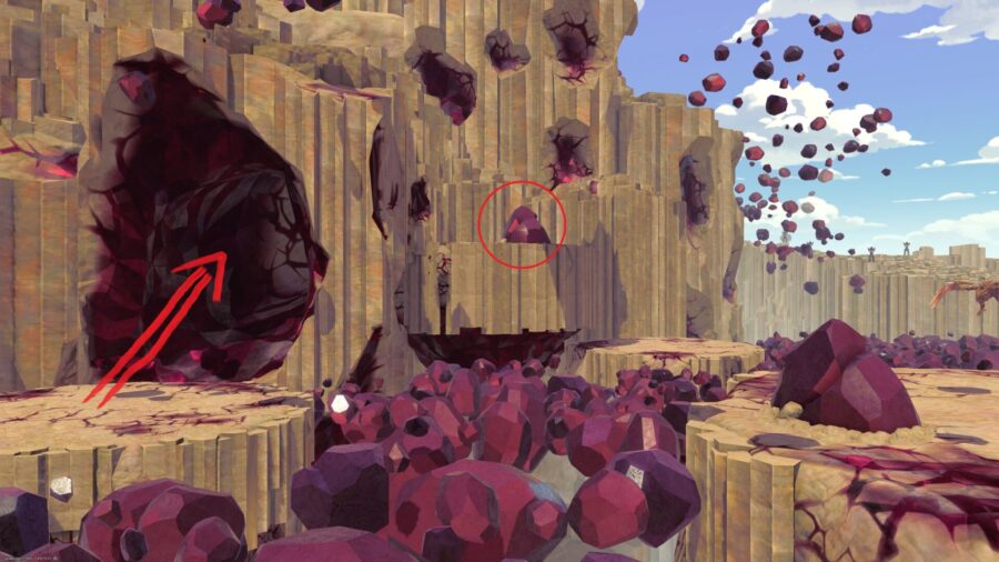 浮いている岩側へ進み、3つの黒い岩のそばに立つ。
