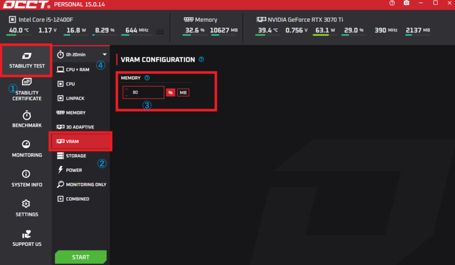 OCCT VRAMãã¹ãã®ããæ¹