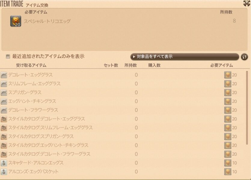 - 欲しいアイテムにチェックを入れると、必要トリコエッグ合計が自動で更新されます。