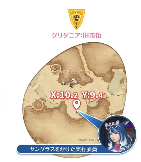 - グリダニア:旧市街(X10.2 Y9.4)