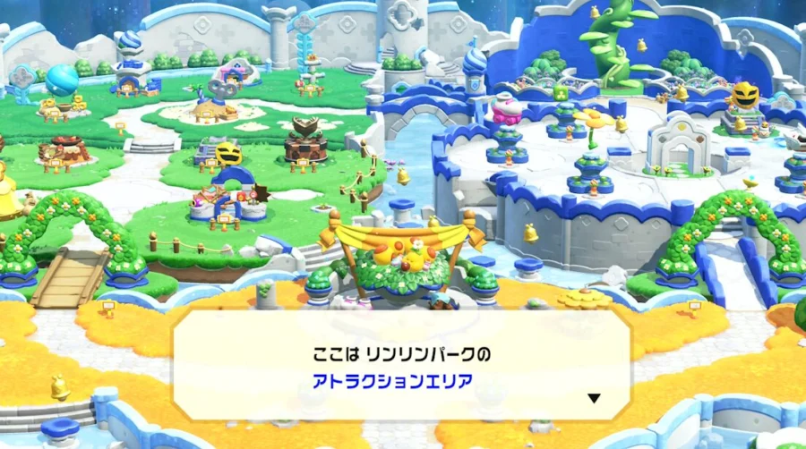 今回のアップグレードパスで追加される中心要素は、任天堂公式の案内を見ると大きく分けて次の内容です。新エリア「リンリンパーク」、ロゼッタ、アシストチコ、おたすけモード、キノピオ探検隊の訓練、そしてSwitch 2ならではの遊びや表示強化が含まれています。