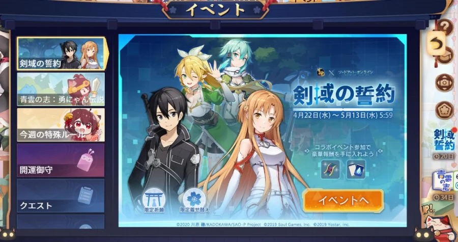 ©2020 川原 礫/KADOKAWA/SAO-P Project ©2019 Soul Games, Inc. ©2019 Yostar, Inc.