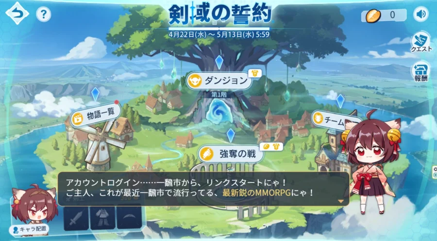 アカウントログイン……一飜市から、リンクスタートにゃ!