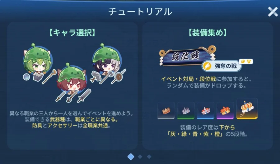 序盤は、装備の色を目安に選んでいくと分かりやすいです。
