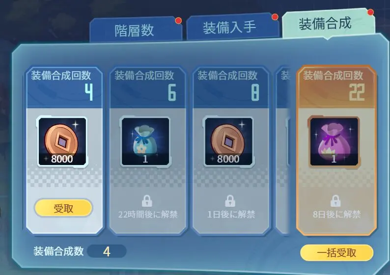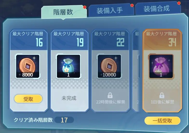 イベント報酬は「階層数」「装備入手」「装備合成」の3パターン