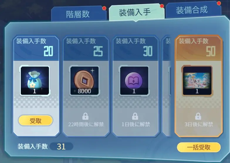 右下には一括受取ボタンもあるため、ある程度進めたあとにまとめて確認するのもよさそうです。