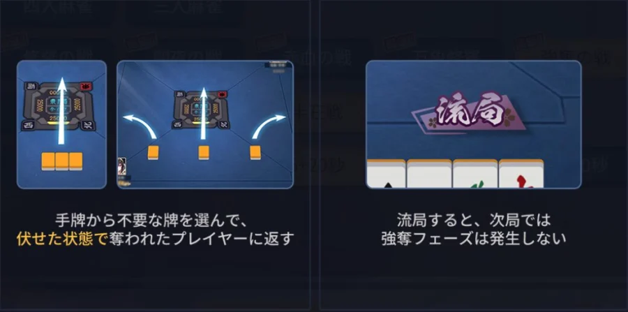 ただし、流局した場合は次局で強奪フェーズは発生しません。