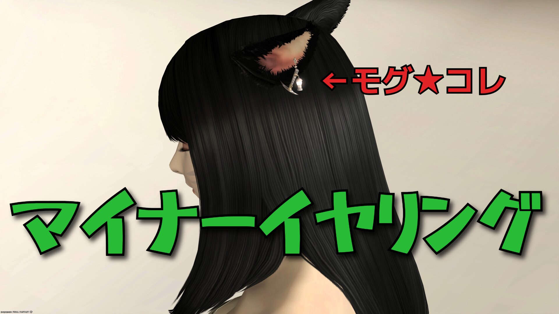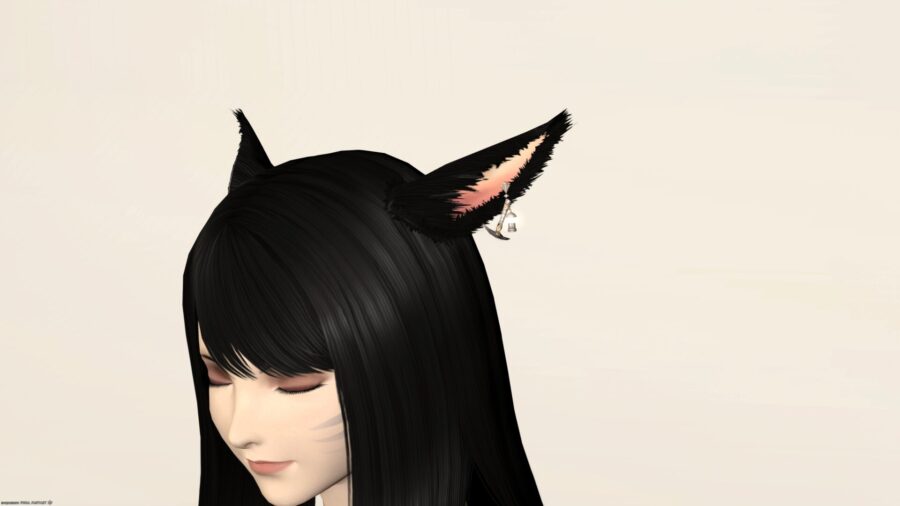 ミコッテ女性がマイナーイヤリングFF14アイコンを装備しています。
