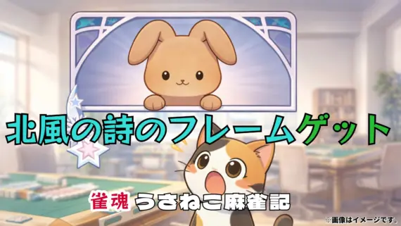 じゃんたま期間限定装飾品で「北風の詩のフレーム」を10連ガチャで入手!開催期間(12/17〜1/13 5:59)と立直・和了演出など内容をまとめます。