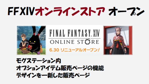 その他 FF14 FFXIVオンラインストア 6.30リニューアルオープン FFXIVオンラインストアうさちゃんFFXIVオンラインストアは、モグステーション内オプションアイテム販売ページの機能、デザインを一新した販売ページだよ♪FFXIVオンラインストアは、モグステーション... その他