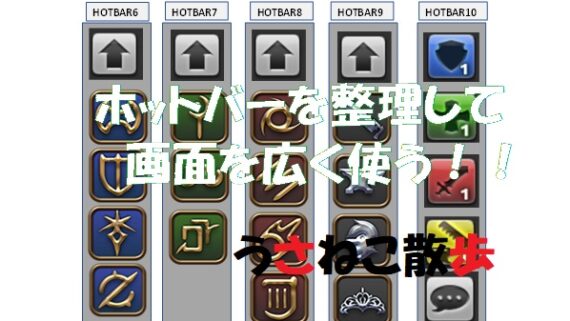 初心者 FF14 ホットバー の簡素化・整理(画面領域広く)を考える ホットバー が多くて画面が見ずらいので整理(出し入れ・切替)したいねこちゃんうさちゃーん、ホットバー10個も使っていると画面が見づらいので、なんか上手いこと表示ホットバーを切り替えて表示したいんだけど... 初心者