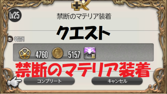 初心者 FF14 禁断のマテリア装着 クエスト【初心者さん】 禁断のマテリア装着うさちゃん「禁断のマテリア」装着とは装備に付いているマテリア穴の数以上に、マテリアを装着しようとする禁断の技!禁断の成功率は100%未満(現状最高である5穴目は一桁台の成功率になるこ... 初心者