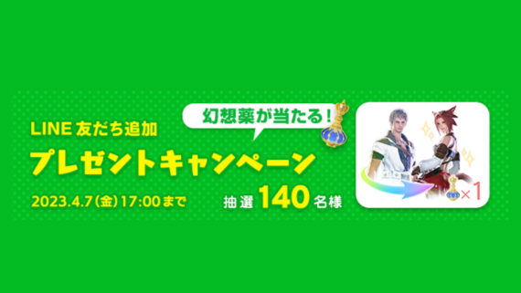 その他 FF14 LINE友だち追加で「幻想薬」が当たるキャンペーンを実施 「幻想薬」が当たるうさちゃんファイナルファンタジーXIVのLINE公式アカウントを友だちに追加して、LINEのトーク画面からキャンペーンに応募すると、抽選で140名に「幻想薬」がプレゼントされます✨う... その他