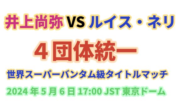 うさちゃん雑記 井上尚弥 vs ルイス・ネリ 4団体統一世界スーパーバンタム級タイトルマッチ 井上尚弥 vs ルイス・ネリ 4団体統一世界スーパーバンタム級タイトルマッチうさちゃんAmazon プライム会員特典で2024年5月6日に東京ドーム開催の4団体統一世界スーパーバンタム級タイトルマッチ... うさちゃん雑記