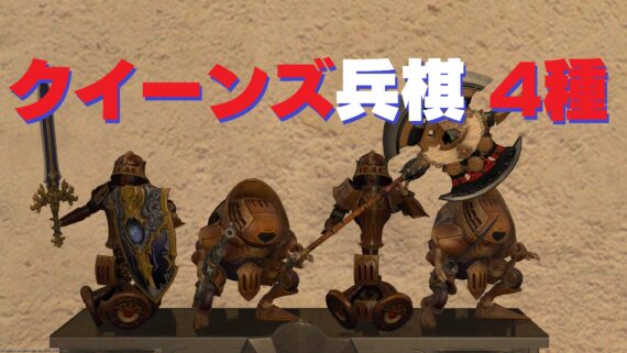 サブクエスト FF14 クイーンズ 兵棋4種(Queen’s Guard) 4種類の兵棋うさちゃんいつの間にか所持品に入ってたハウジングアイテム。ねこちゃんに聞いてみると、欲しい! と大騒ぎ笑ねこちゃんこの兵棋は同じのばかりがドロップしていて、ウォリアーがなかったのだ。今のと... サブクエスト