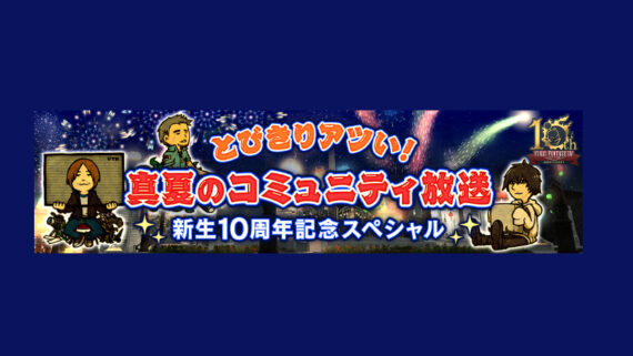 その他 FF14 「とびきりアツい! 真夏のコミュニティ放送 新生10周年記念スペシャル」2023年8月26日(土)放送決定! とびきりアツい! 真夏のコミュニティ放送 新生10周年記念スペシャルうさちゃんファイナルファンタジーXIVは、2023年8月27日(日)に新生10周年を迎えます。そんな記念すべき日をプレイヤーの皆さん... その他