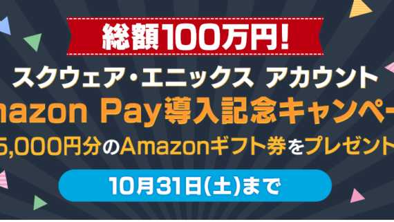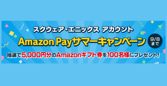 その他 FF14 Amazon Pay 決済導入記念キャンペーン Amazon Pay キャンペーン 10月31日(土)まで実施中! うさちゃんスクウェア・エニックス アカウントの決済方法に Amazon Pay が追加されたことを記念して、抽選で200名様に5,0... その他