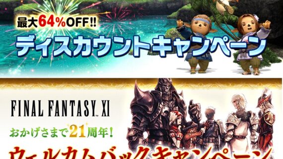 FF11 FF11 20周年 ウェルカムバック・ディスカウントキャンペーン 2022年 FF11 ウェルカムバックキャンペーン とは?うさちゃん過去に一度でも「プレイオンライン/ファイナルファンタジーXI」の製品版サービスアカウントを契約していただいていた方は、下記期間中「ファイナルファ... FF11
